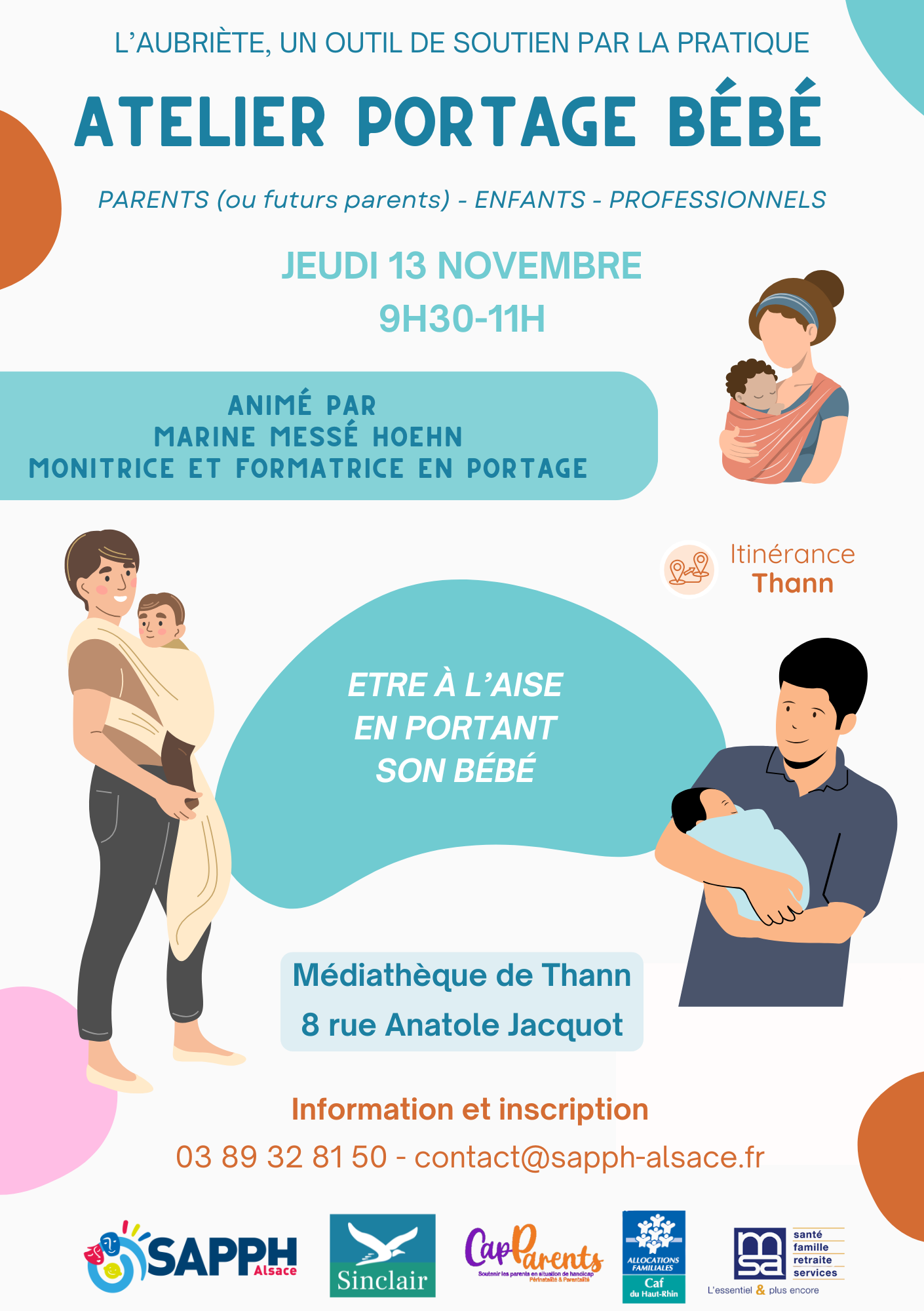 Atelier portage bébé, jeudi 13 novembre à Thann à 9h30